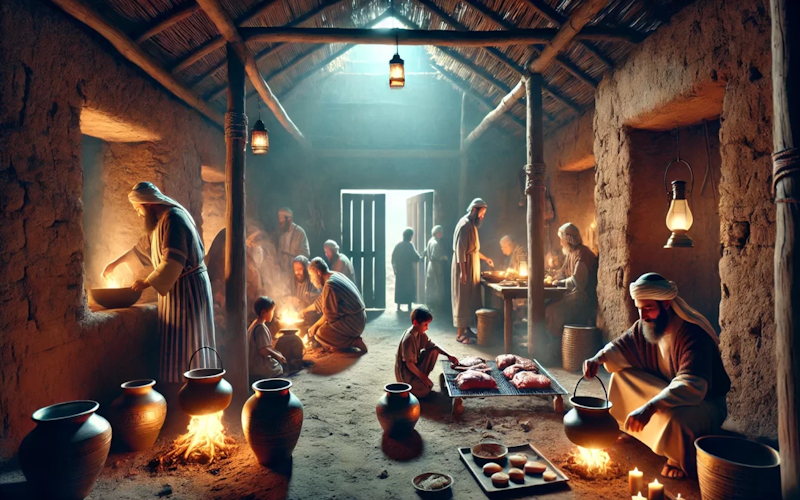 A ceia pascal, composta por carne assada, pães ázimos e ervas amargas, carregava uma pedagogia profunda. O pão sem fermento simbolizava a pureza e a pressa da partida, enquanto as ervas amargas traziam à memória o sofrimento da servidão. Comer a Páscoa era, simultaneamente, um ato de lembrança da dor passada e de celebração da esperança futura. Aquela refeição nutria o corpo para a jornada que começaria em poucas horas, unindo a comunidade em torno de uma mesa de redenção.